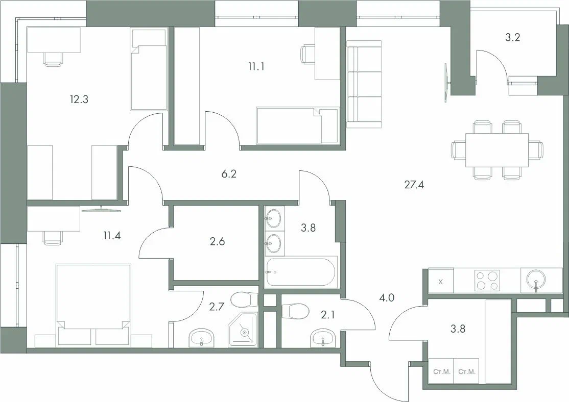 27,4 м2