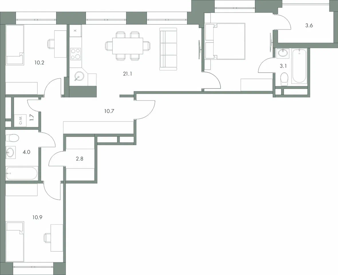 21.1 м2